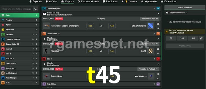 A aposta t45 oferece aos jogadores a experiência mais conveniente de apostas em eSports!